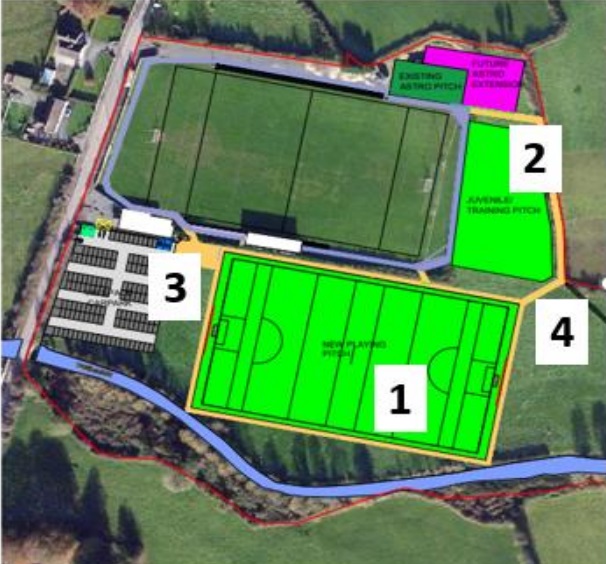 This money will allow us to create 1) a new full size playing pitch. 2) new juvenile training pitch. 3) install a new car park and 4) extend the walkway